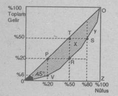 gelir dağılımı eşit gelir dağılımını gösteren 45°'lik